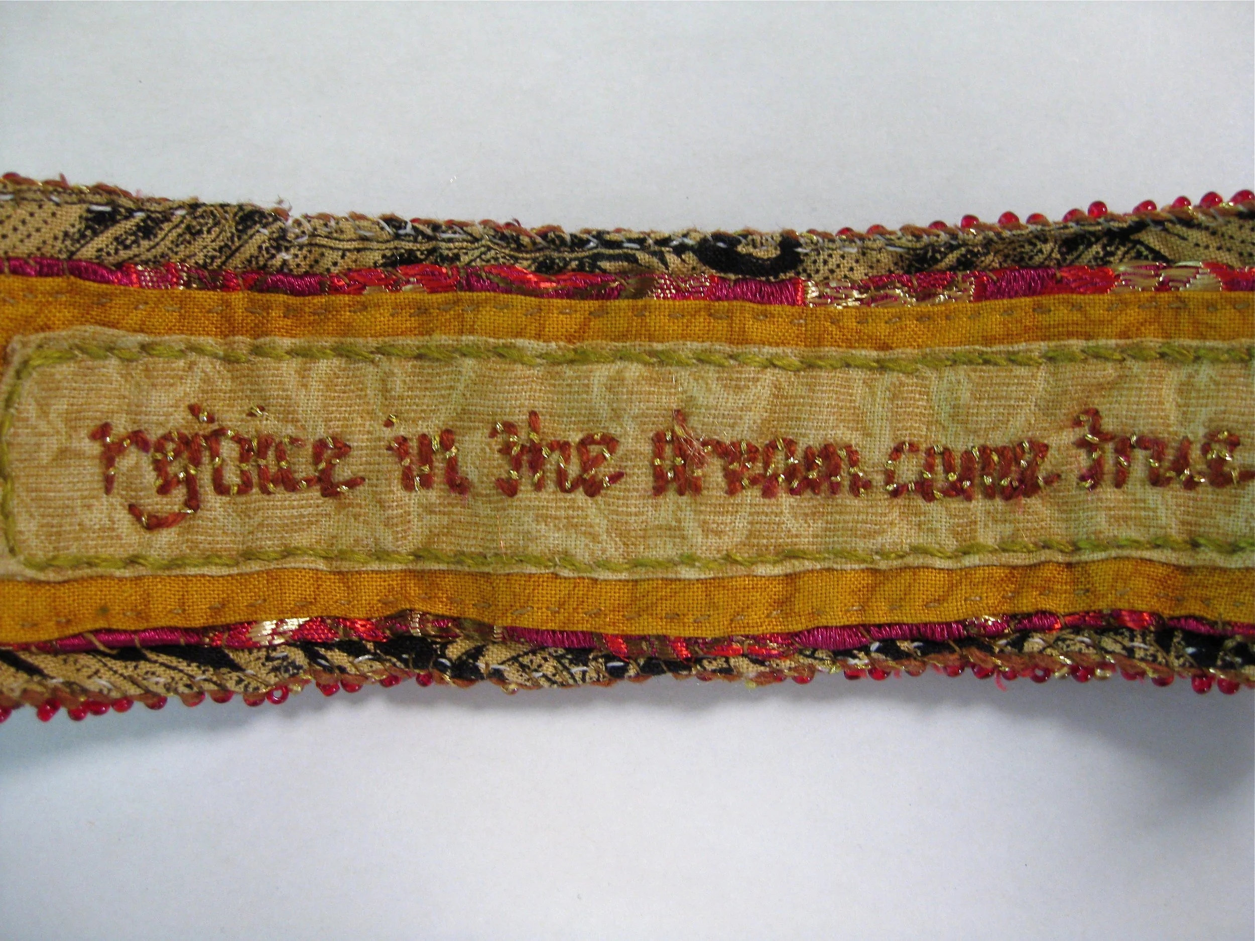 The elements of fiber and glass, wool and hook, needle and thread, has fed me, in quiet hours, stitching, sewing and expressing what I am unable to say with words. Within the cotton and wool, I leave a trail, a personal creative continuum.